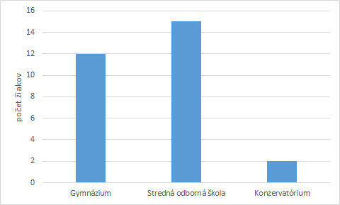 Žiaci z 9.A si podávali prihlášky na stredné školy. Zastúpenie jednotlivých typov škôl znázorňuje nasledovný graf: