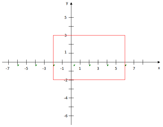 Útvar sa v osovej súmernosti zobrazí sám na seba, čiže v prípade daného obĺžnika osou súmernosti je os ľubovoľnej strany. Os strany prechádza stredom strany, preto hľadáme stred medzi bodmi [-2;0] a [6;0]. (-2+6):2=2, preto os súmernosti bude prechádzať bodom [2;0].