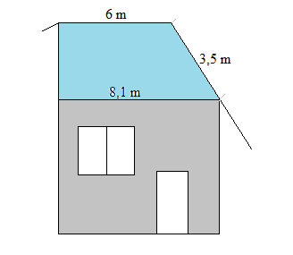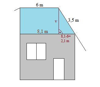 Strecha nového domu nášho suseda má zvláštny tvar pravouhlého lichobežníka. Na obrázku sú vyznačené niektoré rozmery. Zistite, aký vysoký je priestor pod strechou.