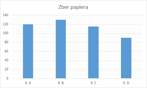 Zberu papiera sa zúčastnili aj žiaci 9. ročníka. Na základe údajov z grafu zistite, koľko kilogramov papiera nazbierala priemerne každá z daných tried.