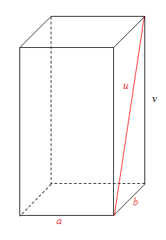 Dĺžky hrán podstavy štvorbokého hranola sú a = 4,5 cm a b = 3 cm. Dĺžka stenovej uhlopriečky u je 5 cm. Vypočítajte objem hranola.