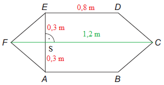 SABCDEF = 2⋅(1,2+0,8)⋅0,3 /2 = 2⋅2⋅0,3/2 = 0,6 m2